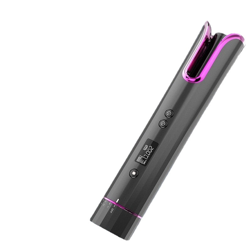 Wireless Automatic Curling Iron with USB charging, featuring a large LED display and sleek design for easy styling.