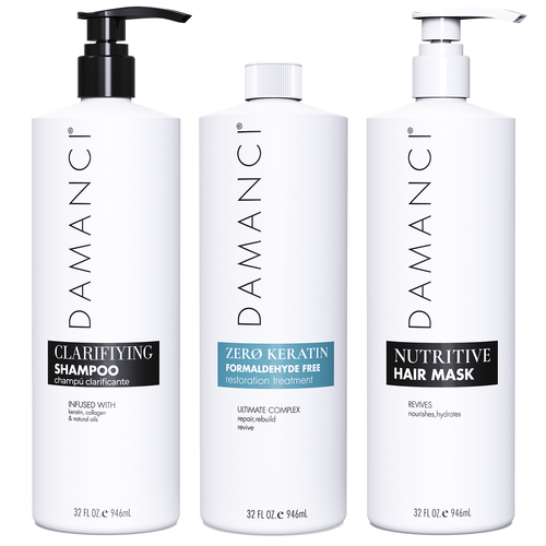 Our ZerØ Keratin Revival Treatment Kit (Formaldehyde Free) is enriched with organic coconut oil, hydrolyzed keratin, collagen and other natural ingredients to promote hydration and fortify hair. This innovative hair restructuring formula acts as a revitalizing, rejuvenating treatment that provides healthy moisture, brightness and vitality.