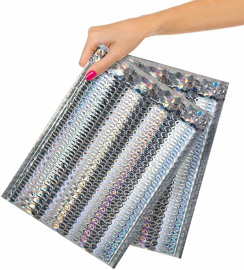Holographic Metallic Bubble Mailers 8 1/2" x 11".