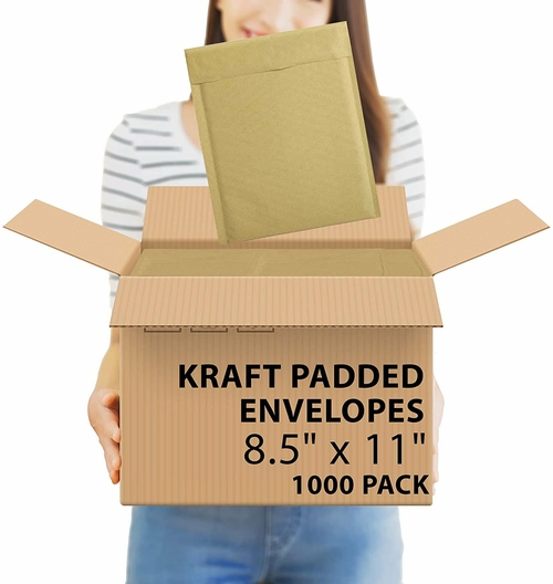 1000 Pack Natural Kraft Padded Envelopes 8.5 x 11 Inch Size. Bubble