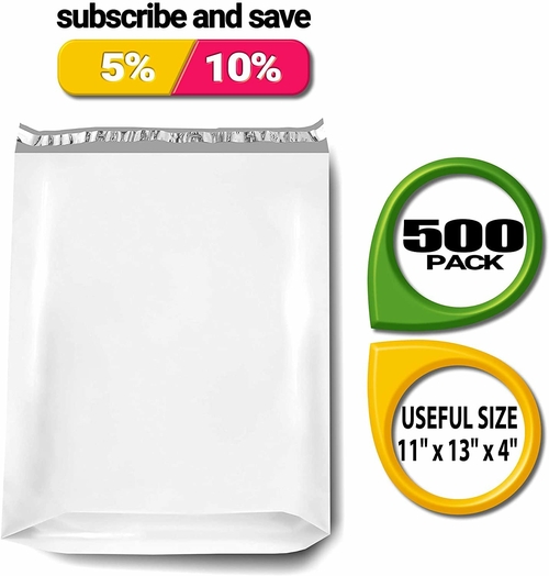 Pack of 500 Expansion Plastic Mailing Bags 11” x 13” x 4”