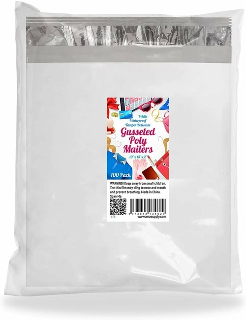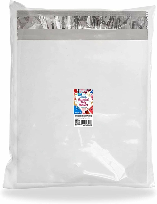 Color: white surface with silver inner lining. Opaque packing envelope. Thickness: 2.4 mil. Size: 11x13x4 BOTTOM GUSSET: Utility envelope bag: gusset bottom expansion specially for