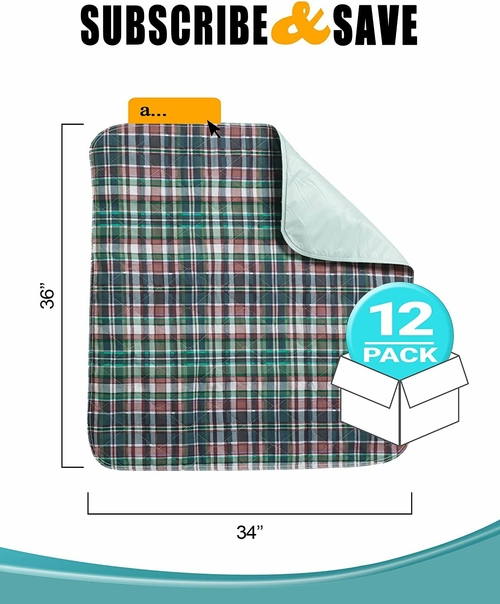 12 Pack Reusable Underpads 34 x 36. Quilted Washable Absorbent