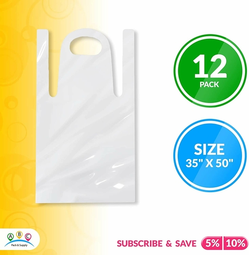 Size: 35” x 50” Quantity: 12 count Thickness: 6 milThis durable apron is a handy addition to any cafeteria, deli, or restaurant. Our heavy-duty aprons are a convenient option for food service professionals, who are w