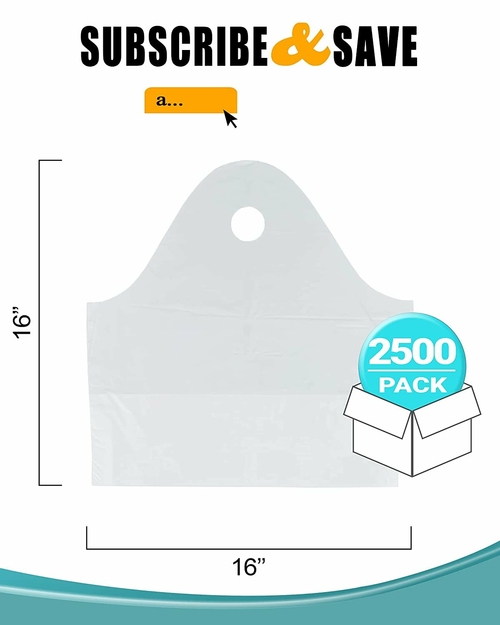 Dimensions: 9.5” x 7” sq. bottom, 16”- length, 16”- height Color: white Quantity: 2500 pieces These general-use bags are cost-effective and very functional because of its wide opening and ability to load eas