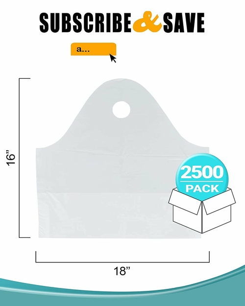 Dimensions: 9” x 9” sq. bottom, 18”- length, 16”- height Color: white Quantity: 2500 pieces These general-use bags are cost-effective and very functional because of its wide opening and ability to load easil