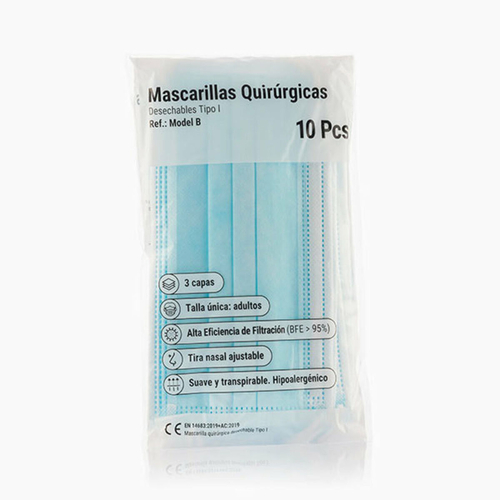 - Manufactured according to Directive 93/42/EEC concerning medical devices following standard EN 14683:2019+AC:2019