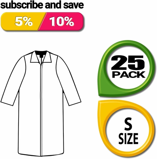 No pockets, snap front, elastic wrists Size: S Quantity: 30 count These extra lightweight labcoats offer basic protection against light splashes and dusts. Ideal for general protection from dust or lig