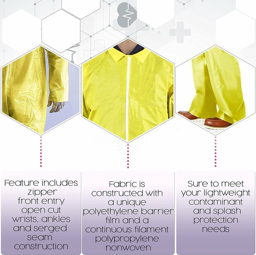5 Pack Disposable Hazmat Suits X-Large. Yellow Disposable Coveralls.