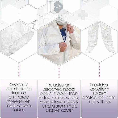 Dropship 5 Pack Hazmat Suit Disposable Coverall. White Protective Suit X-Large.