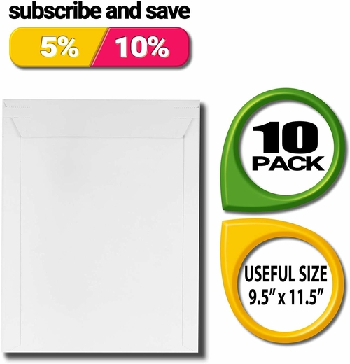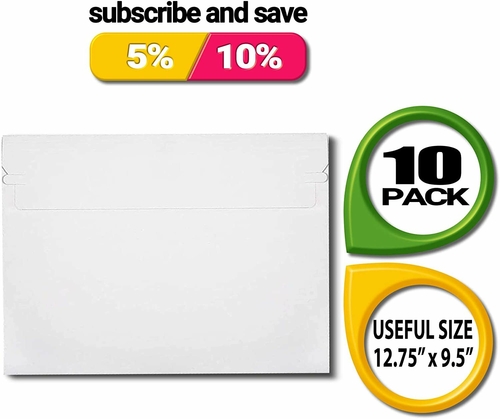 Fashion Rigid envelopes. PACK of 10 mailing envelopes. White color shipping mailers. NO BEND: Non-bendable mailer, clean white appearance. Rigid fiberboard backing resists b