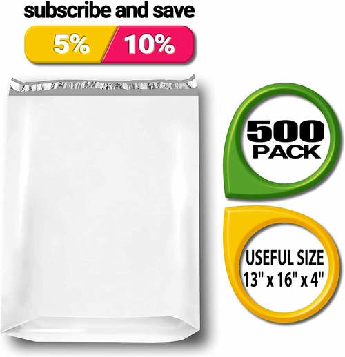 500 Pack of White Poly Mailers 13 x 16 x 4 Size. Gusseted Poly Mailers