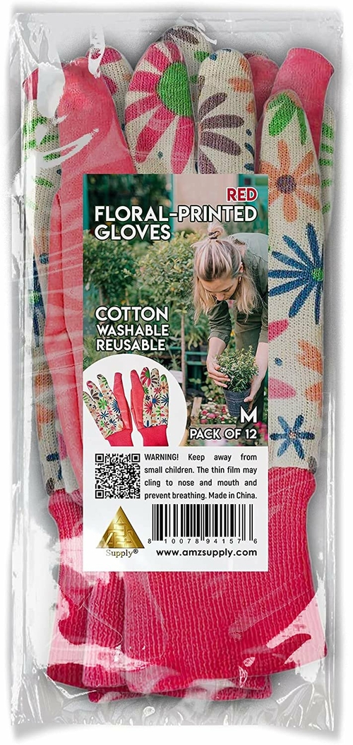 APQ Gardening Work Gloves for Women. Breathable Flower Print 6 Pairs Medium Size