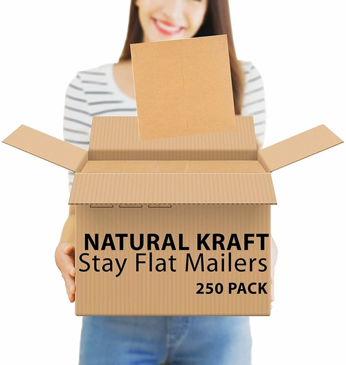 Fashion Rigid non bubble envelopes. CASE of 250 mailing envelopes. Natural color shipping mailers. NO BEND: Non-bendable CD mailer, clean brown appearance. Rigid fiberboard backing resists bending