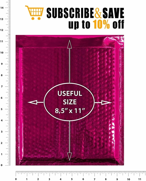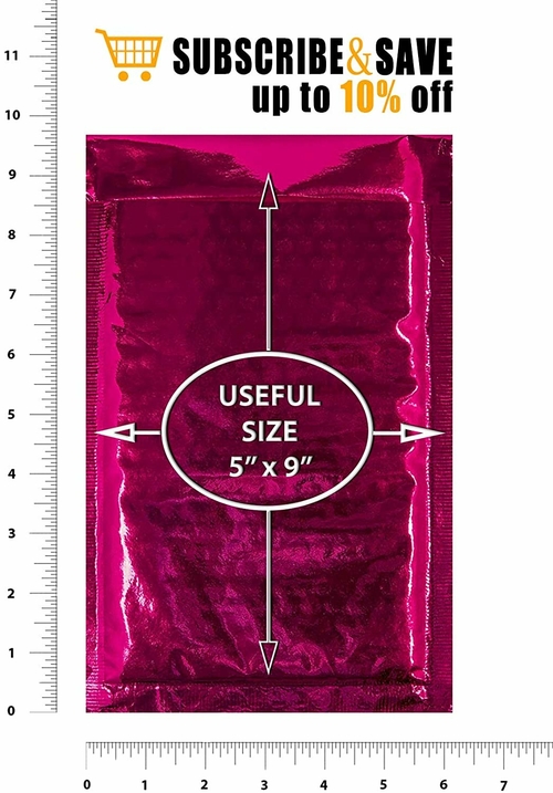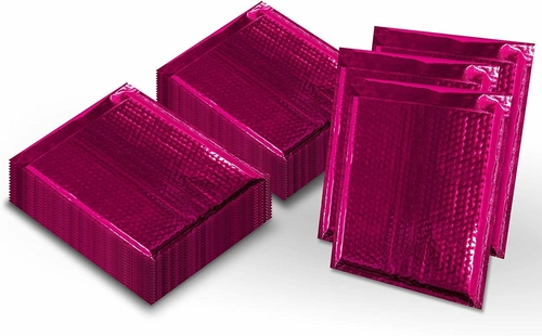 GLAMOUR PINK BUBBLE MAILERS with Peel and Seal. MIRRORED METALLIC FOIL Boutique versicolor envelopes. Laminated Metalized Foil. Useful space 7.25" x 7". Outside size 8.25" x 7.5". Manufacturer size tolerance +/- 25". PACK of 250 padbookded mailing bags. .