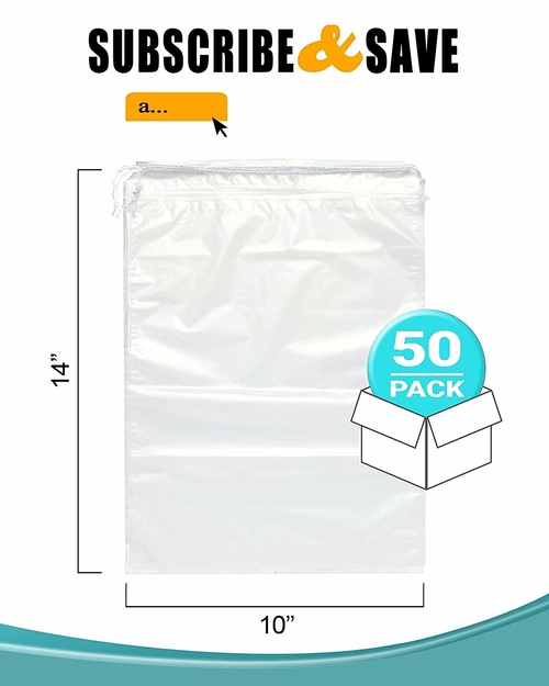 Clear Plastic Drawstring Bags 10" x 14", Pack of 50 Clear Bags for
