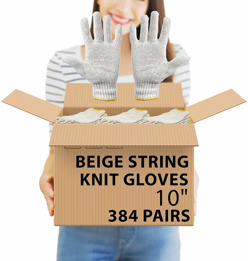 Size: Large Color: Beige gloves with yellow edge line Quantity: 24 count Looking to outfit your workers? Get your gloves for less when you buy in large quantities. Seamless beige co