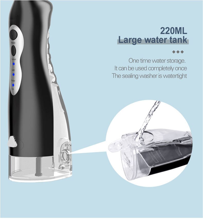 The irrigator features a generous 220ml water tank capacity, which is perfect for daily use. This large capacity ensures that you can complete your flossing routine without the need for frequent refills. The design is user-friendly, allowing for easy filling and cleaning, making it an ideal choice for busy individuals who want to maintain their oral hygiene without hassle.