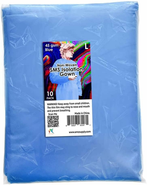 Dropship Disposable Gowns. Pack of 10 Blue SMS Gowns Large, 45 gsm Non-Woven