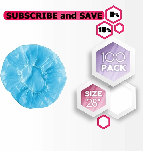 Blue Bouffant Caps Soft and Comfortable Product details: Quantity: 100 pcs Packaged: 100 caps per box Color: Blue Size: 28" Material: Spunbonded polypropylene Not made with natural rubber latex Disposable hair caps are ideal for light industrial a