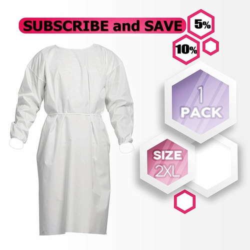 Dropship Disposable Isolation Gown XX-Large 48". White Disposable Gown. 50 gsm