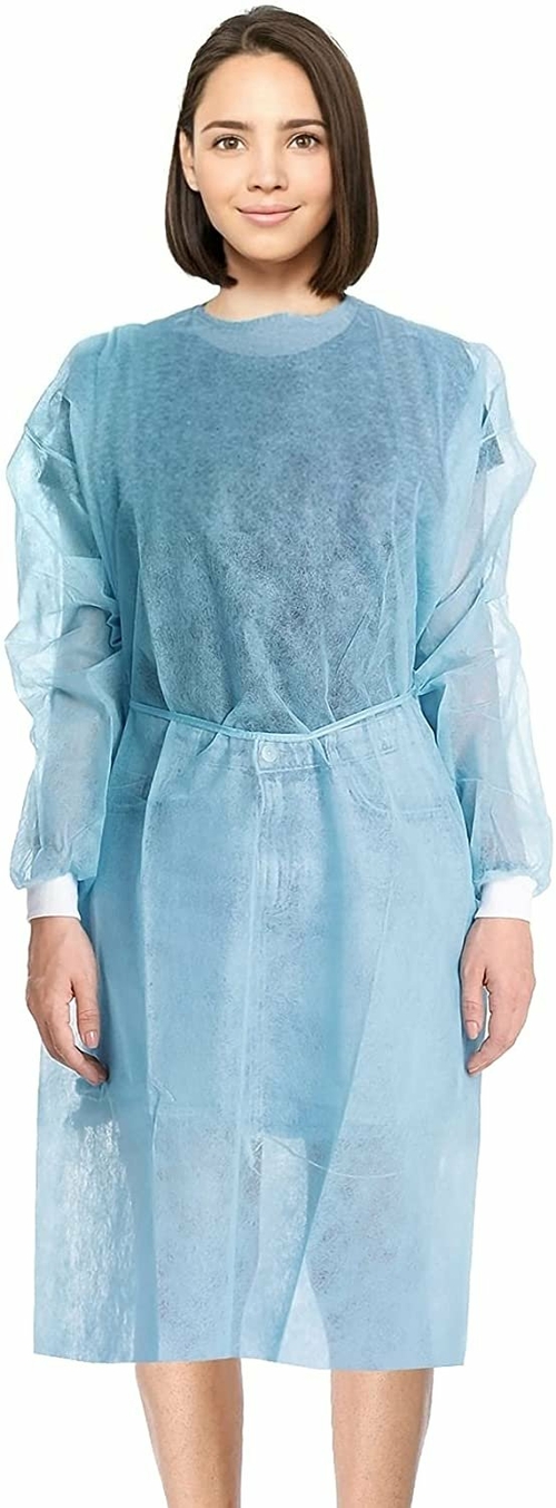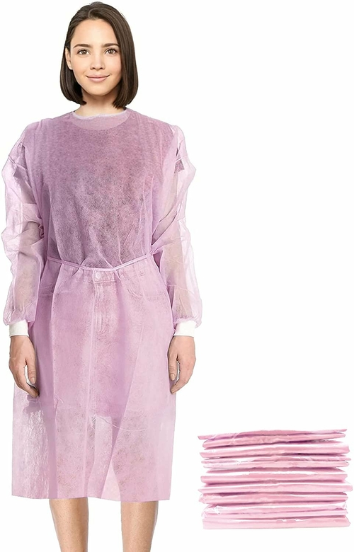 Pink High Performance Spundond Polypropylene Isolation Gowns with Long Sleeves, Knitted Cuffs and Ties at Back.