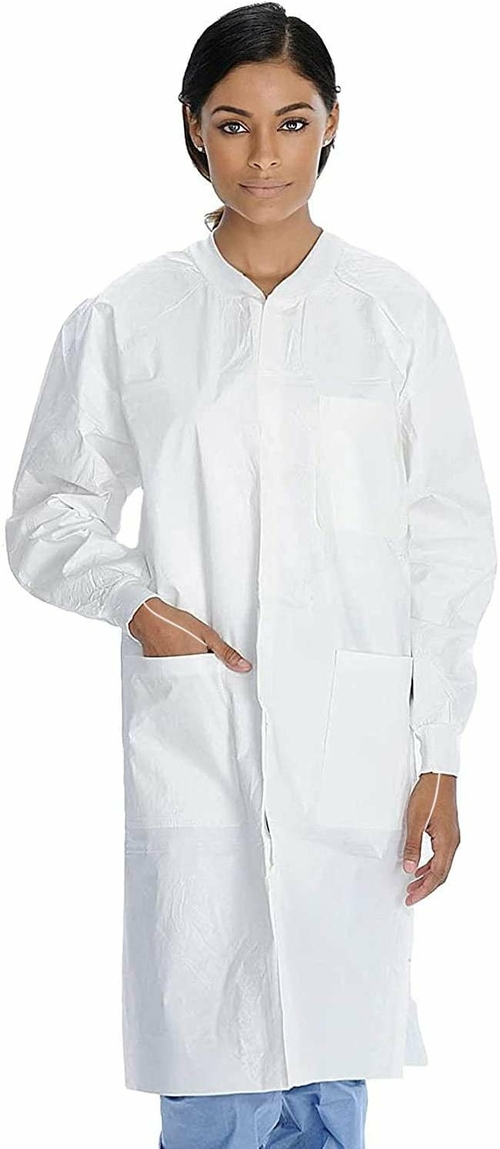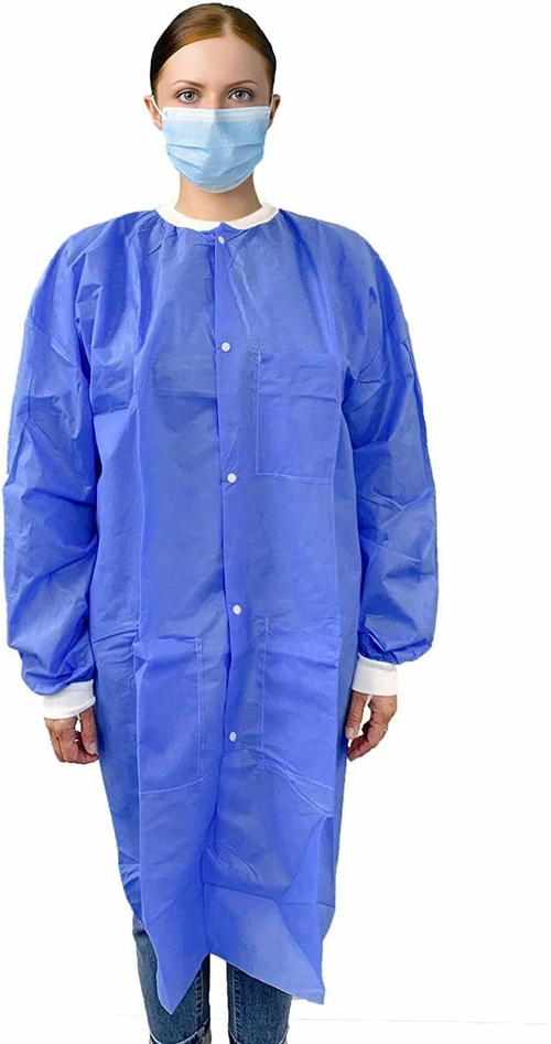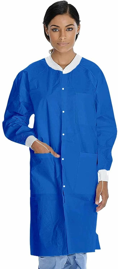 Blue SMS Laboratory Coat with Snaps Front, Collar, Knit Wrists with Thumb Loops