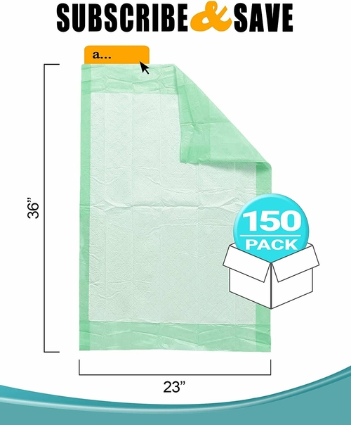 Disposable Underpads 23" x 36". Pack of 120 Green Poly Backing