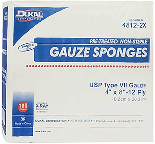 Dukal Type VII Gauze Sponges 4" x 8". Pack of 100 X-Ray Detectable
