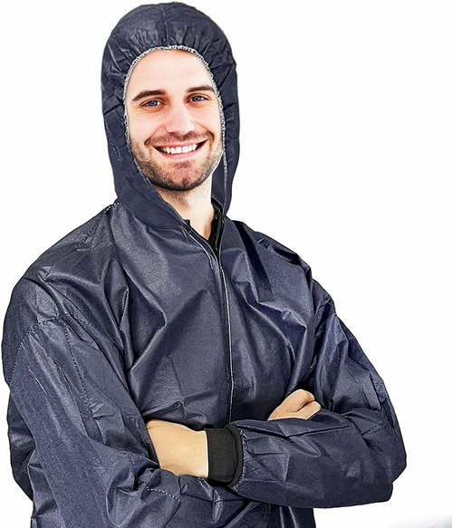It was made from polypropylene 55 gsm, specifically designed with a unique construction to make it ideal for many applications due to its various features. These hip-length coveralls include long sleeves, zipper front, hood, knitted cuffs for added conven