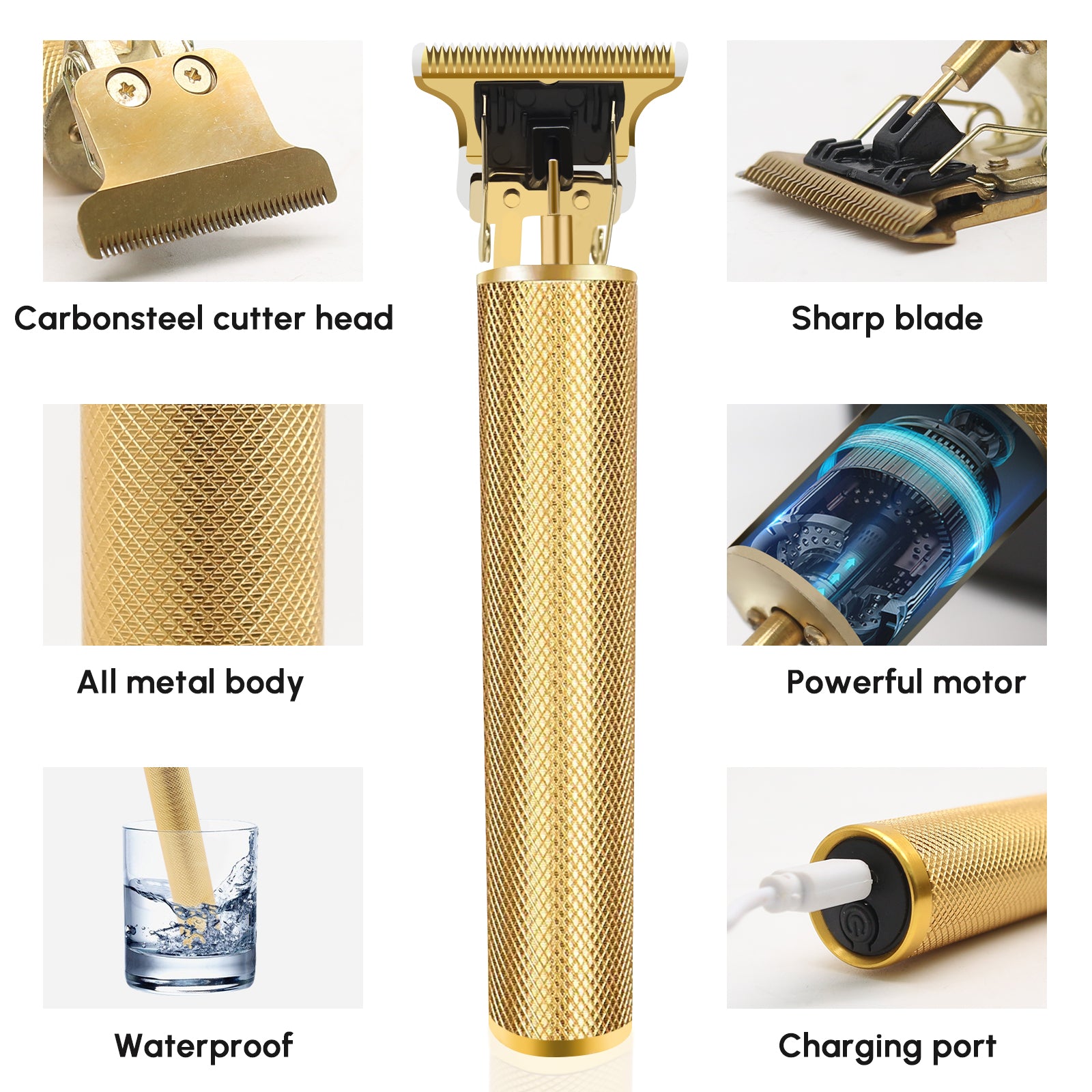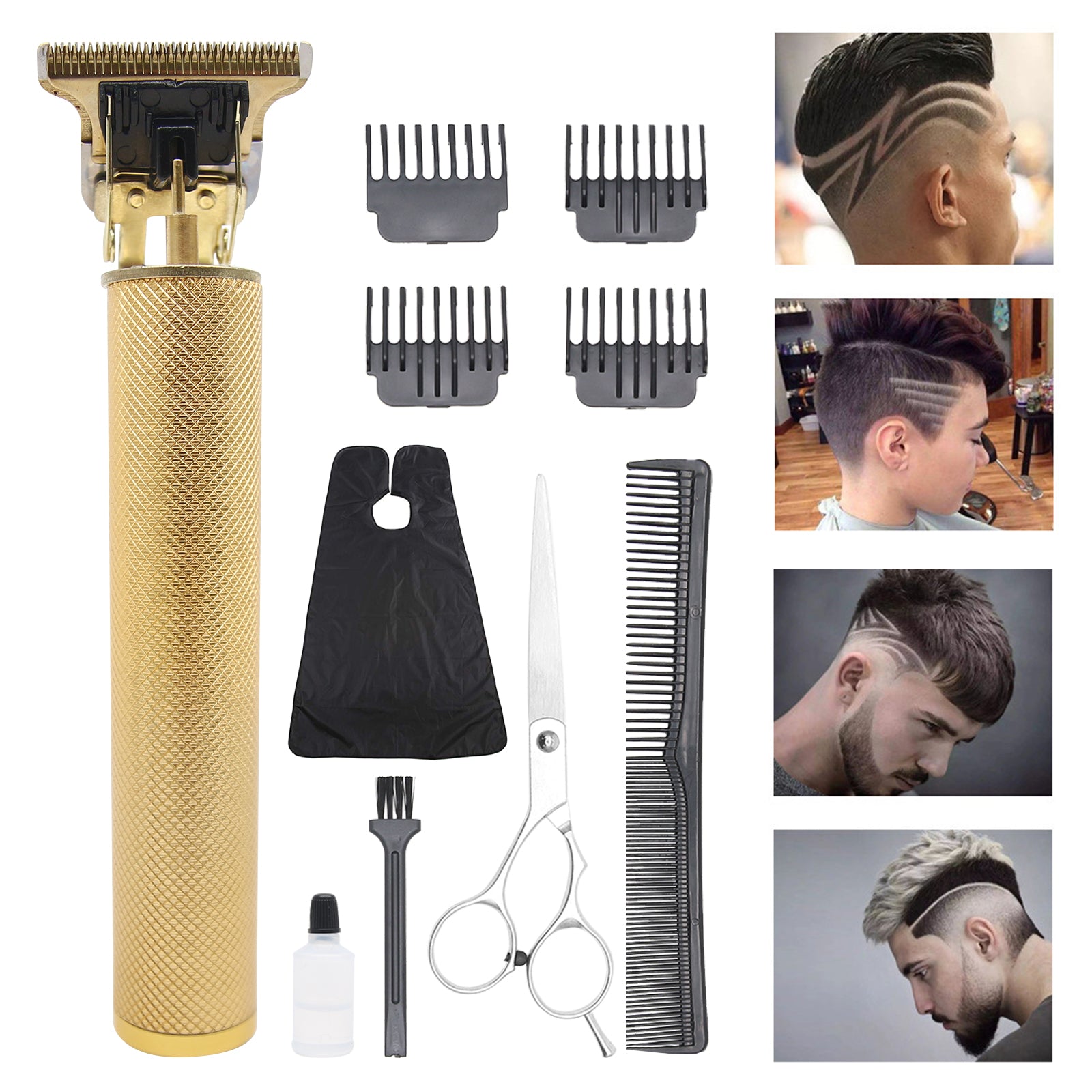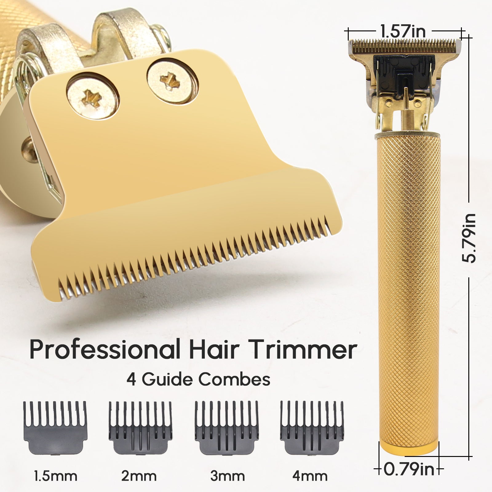 Our hair clippers come in two stylish colors: Gold and Black. The body is made from durable metal, while the blades are crafted from high-quality titanium for precision cutting. The package includes everything you need to get started: 1 trimmer, 1 USB cable, 1 cleaning brush, 1 hair comb, 1 pair of scissors, 1 cape, 1 set of operating instructions, and 4 limit combs (1.5mm, 2mm, 3mm, 4mm). This comprehensive package ensures you have all the tools necessary for a professional grooming experience.