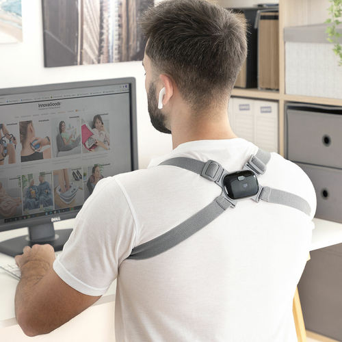 An intelligent posture trainer with a modern, unisex and one-size design that vibrates to alert you when your posture deviates by 25º from the initial correct posture. It enables gradual training by starting with one hour a day and increasing this a little at a time. The LCD screen with counter is very useful for maintaining good posture control and for recording progress. The monitor records the times that the back deviates from the established 25º limit, although this can be restarted whenever you wish. This ergonomic posture corrector has adjustable elastic straps to make it completely adaptable, very comfortable and discrete to wear, as it can be worn under clothing. It is also rechargeable, so you do not need batteries or troublesome cables, and you can use it anywhere at any time. It is very easy to use. You simply charge it for approximately an hour and a half and follow the instructions in the manual included. It comes with a USB-C cable.