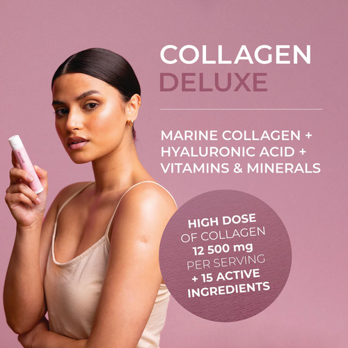 By taking a daily 25 ml dose of Collagen Deluxe you help restore your body’s collagen levels for clearer, firmer skin and stronger, fuller hair.