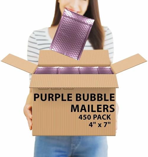 Purple Metallic Bubble Mailers 4" x 7".