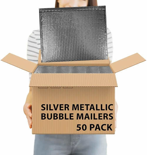 Large Metallic padded envelopes 12 3/4 x 10 1/2. Silver bubble mailers.Application: Folder PACK of 50 mailing envelopes. COL