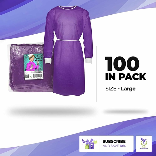 Color: PurpleCuff Style: Knit CuffsFastening Type: Waist / Neck TiesMaterial: SMS45 GSM fabricSize: LargeSleeve Style: Long SleevesSterility: NonSterileUsage: DisposableQuantity: 10 pcs per case