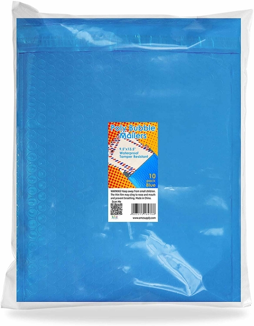 Blue Poly Bubble Mailers 9.5" x 13.5"
