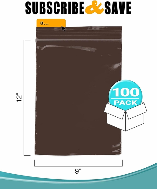 Pack of 100 Brown Zipper Bags 9 x 12. Seal Top Plastic Bags 9x12.