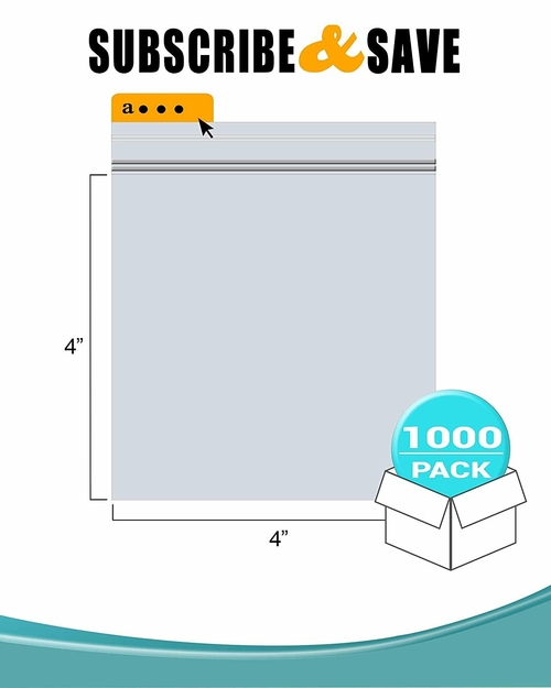 Dimensions: 4 inch W x 4 inch L Gauge: 4 mils Color: clear Closure: seal top Quantity: 1000 pack Seal Top Reclosable bags provide outstanding protection, convenience and economy. Zipper bags are designed with str