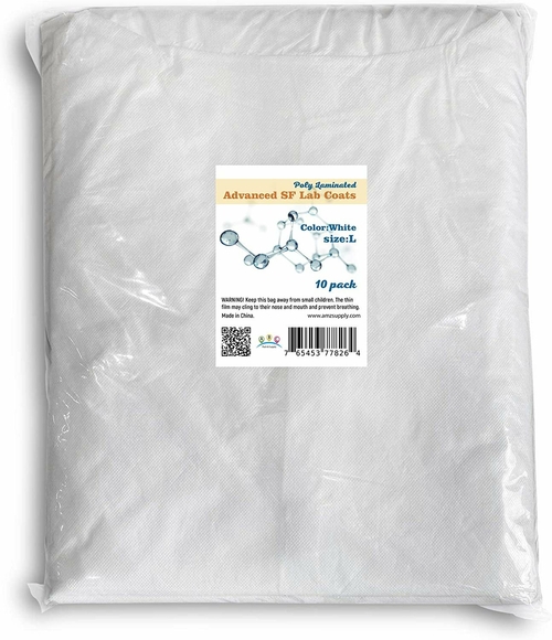 White Plastic SF (PP Microporous film) 60 GSM Laminated Gowns. Water resistant and breathable.