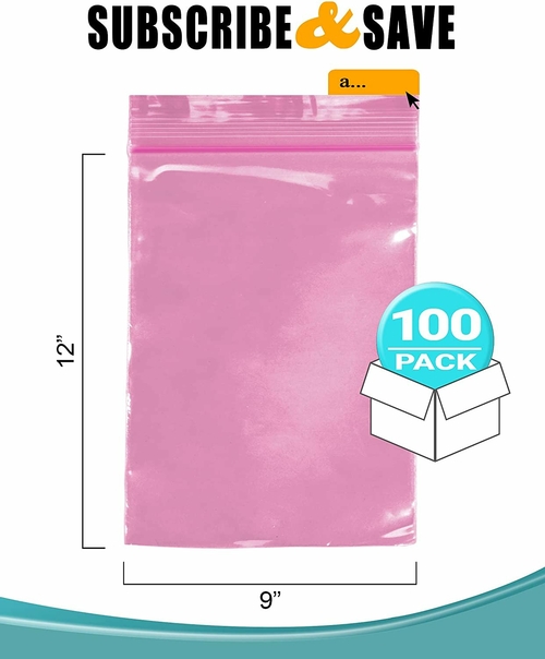 Dimensions: 9 inch W x 12 inch L Gauge: 4 mils Color: pink Closure: seal top Quantity: 100 pack Low Density Polyethylene is an excellent material for flexible packaging used for storage and transport of a var