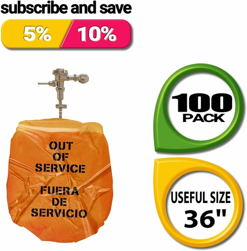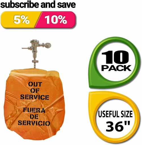 Print: OUT OF SERVICE in English and Spanish Quantity: 10 count Size: 36 inch Color: Orange These out-of-service poly covers are made for out-of-service urinals, service commodes and great when