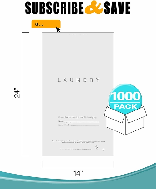 Pack of 1000 Tear Strip Laundry Bags 14 x 24. Ultra Thin Design 1.25