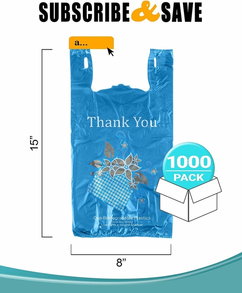 Pack of 1000 Thank You Plastic Bags 8 x 4 x 15. Blue Carry-Out T-Shirt