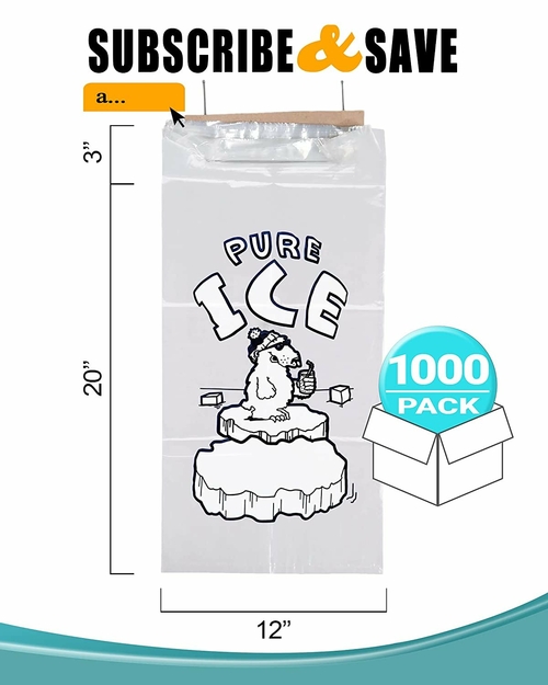 Wicketed Plastic Ice Bags with Twist Ties 12" x 20" + 3"