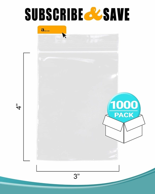 Pack of 1000 Zipper Bags, Clear 3 x 4. Ultra Thick Seal Top