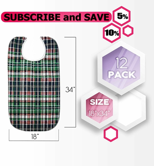 Pack of 12 Adult Clothing Protectors, Highland Blue Plaid 18 x 34.