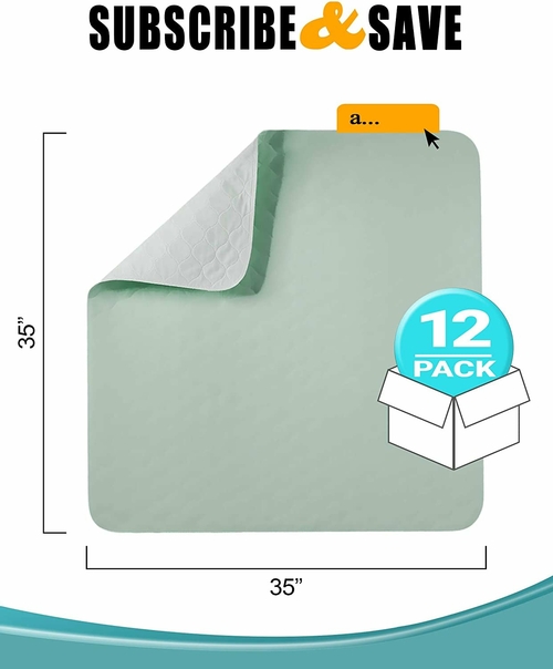 Dimention: 35" x 35" Packing Info: 60/Cs, 2 cases Quantity: 12 pcs These breathable underpads are designed to meet demanding needs and are not only heavy-duty to resist tearing as an individual moves, but