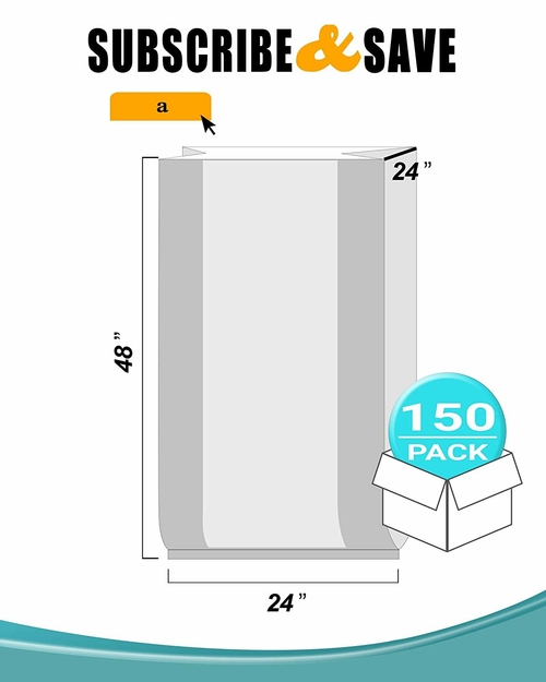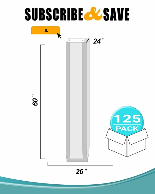 Dropship Pack of 125 X-Large Jumbo Gusset Poly Bags on Roll 26" x 24" x 60".