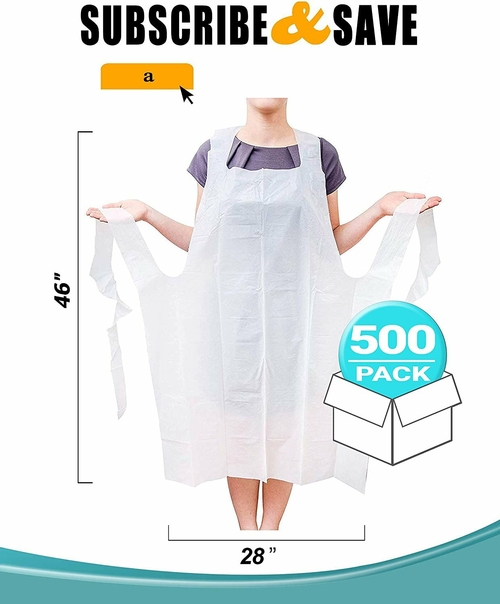 Quantity: 200 count Color: White Thickness: 1 mil Keep your cafeteria, deli, or restaurant's employees' clothing clean with these high quality aprons! Waterproof aprons are made from low density polyethyl